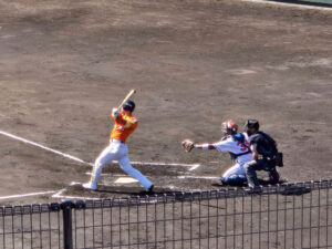 4回表 山下の暴投でハンファが同点とするとオイシックス新潟山下の暴投で勝ち越した。