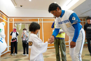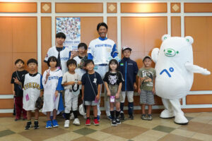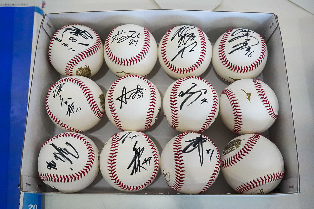 本日、日本ハムvs中日(サンマリン)で行われる予定でした「オンユアマークス」参加の皆さんと始球式予定の参加者へ北海道日本ハムファイターズの稲葉篤紀2軍監督よりサインボールのプレゼントや記念写真の撮影が行われました。