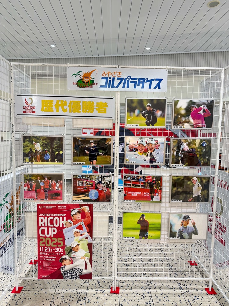 | 内 容 | ・2大トーナメント「ダンロップフェニックストーナメント」「JLPGAツアーチャンピオンシップリコーカップ」の紹介・歴代優勝者の写真展 ・ゴルフグッズの展示販売 ・観光パンフレットの配布 ・期間中に行われる「みやざきゴルフパラダイススタンプラリー」の商品展示 ・チャレンジパターコーナー |
