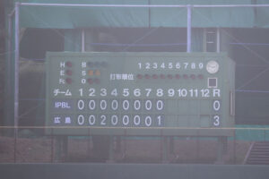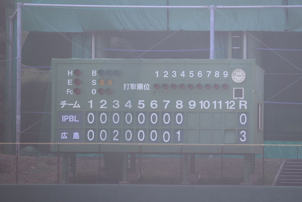 3回裏 佐藤啓のタイムリー安打で広島が先制すると、IPBL選抜先発 依田のボークで1点を追加した。8回裏 二俣のタイムリー安打で広島が1点を追加。投げては先発岡本が完封で広島が3-0で勝利した。