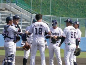投手:狩生(3回)-青山(2回)-シンクレア(1回)-豆田(2回)-宮澤(1回)