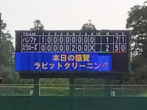 1回表 林宗燦のタイムリー安打でハンファが先制。6回裏 朴在圭のけん制悪送球でヤクルトが同点とすると、丸山和のタイムリー安打で逆転。試合は2-1でヤクルトが勝利した。