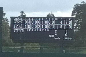投手:坂本(4 2/3回)-西濱(1 1/3回)-翔聖(2回)-阪口(1/3回)