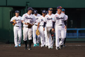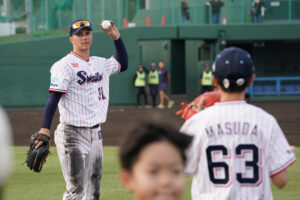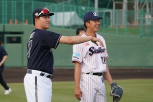 第22回みやざきフェニックス・リーグ プロ野球選手とキャッチボールをしよう! 10/18(土)ヤクルトvsオリックス(西都)試合終了後に、会場で試合を観戦した観客を対象としたキャッチボールイベントが行われました。 オリックスvsヤクルトの試合結果は➡こちら カテゴリー: イベント東京ヤクルトスワローズオリックス・バファローズ第22回