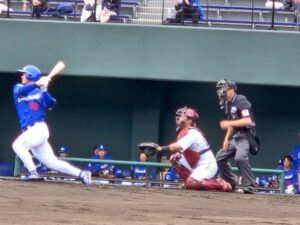 試合が動いたのは7回表 味谷のタイムリー安打で中日が先制、8回表には石橋の犠飛で1点を追加。試合は中日が3投手による完封リレーで2-0で勝利した。