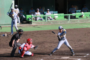 4回表 山田のタイムリー安打、嶋村の2点タイムリー二塁打で3点を返した阪神は、5回表にも佐野のタイムリー安打1点を奪った。